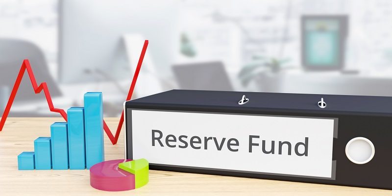 Reserve Fund – Finance/Economy. Folder on desk with label beside diagrams. Business/statistics. 3d rendering